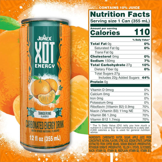 Jumex XOT Carbonated Energy Drink, Tangerine Flavor, 12 Fl Oz 12 Pack